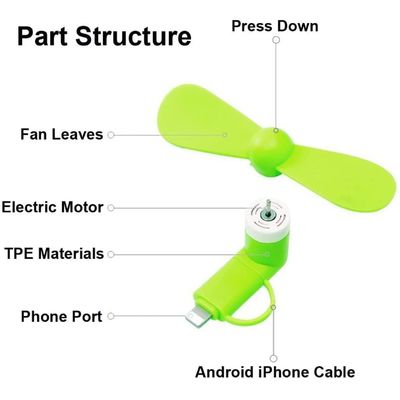 Τυλιζόμενος φορητός ανεμιστήρας κινητού τηλεφώνου TPE ABS υλικό 2 σε 1 για iPhone Android